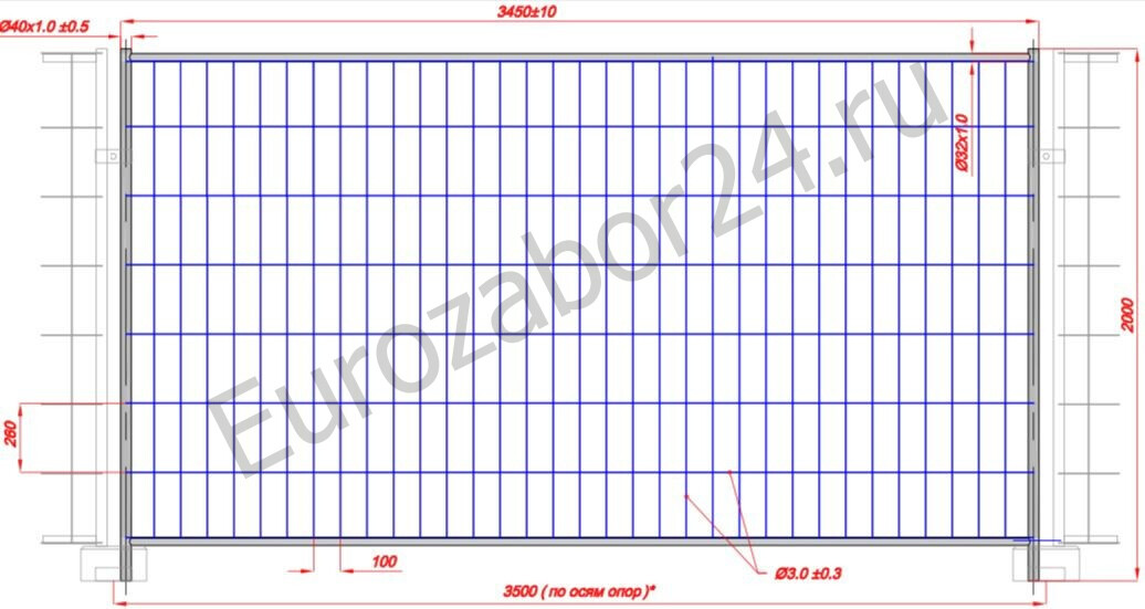 Диаметр прутков сетки 3.0мм / #100x260мм