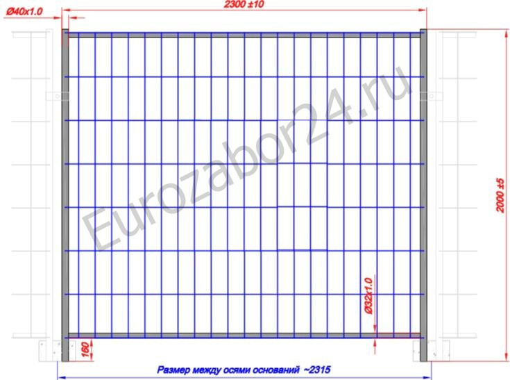 Покрытие: сетка-цинк, рама-грунт/эмаль