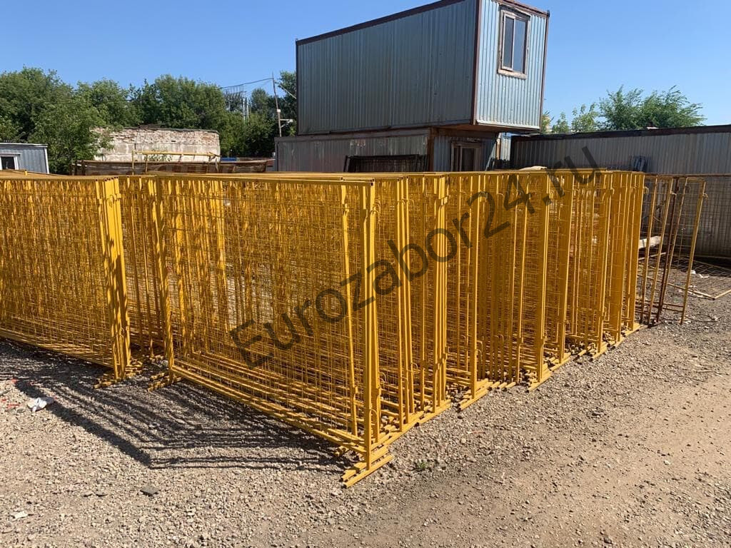 Инвентарные строительные ограждения высота 2000мм длинна 2000мм, выполнены из рамы на основе профильной трубы с заполнением сварной сеткой.